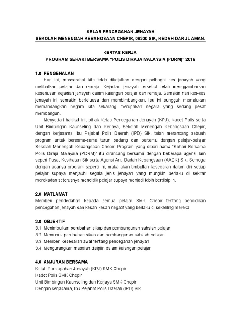 Kertas Kerja Sehari Bersama Pdrm Pdf